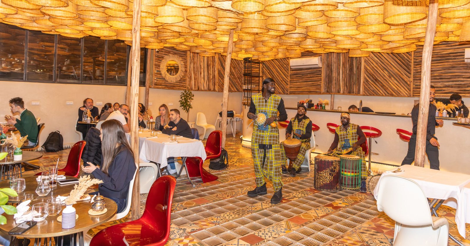 Step into a chic and serene setting where contemporary design, soft lighting, and the charm of Marrakech blend seamlessly to create an unforgettable dining atmosphere.